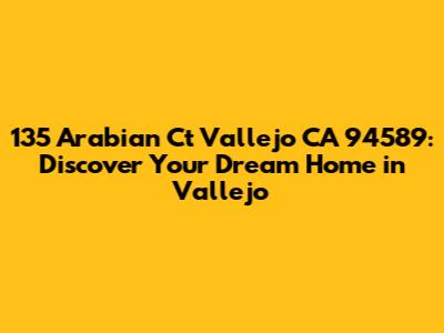 Hey guys! Are you on the hunt for the perfect place to call home in Vallejo, California? Well, look no further because 135 Arabian Ct might just be the dream come true you've been searching for! This amazing property offers a blend of comfort, style, and convenience, making it an ideal spot for families, young professionals, and anyone looking to enjoy the vibrant lifestyle that Vallejo has to offer. In this article, we'll dive deep into what makes 135 Arabian Ct so special, from its stunning features and prime location to the incredible community that surrounds it. So, buckle up and let's explore why this address should be at the top of your list!