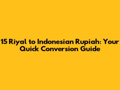 15 Riyal To Indonesian Rupiah: Your Quick Conversion Guide