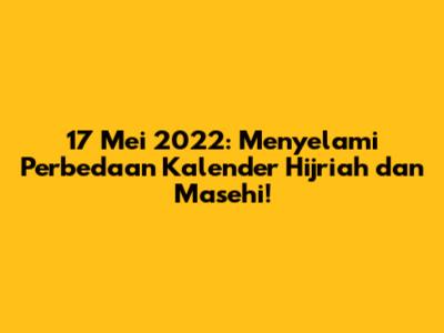 Guys, pernah gak sih kalian penasaran, tanggal 17 Mei 2022 itu kalau di kalender Hijriah tanggal berapa? Nah, artikel ini bakal ngebahas tuntas tentang hal itu. Kita akan menyelami perbedaan antara kalender Masehi yang biasa kita pakai sehari-hari dengan kalender Hijriah yang berbasis lunar atau bulan. Gak cuma itu, kita juga bakal bahas kenapa sih penting banget buat kita, terutama umat Muslim, untuk memahami kedua kalender ini. Jadi, siap-siap ya, karena kita bakal jalan-jalan seru menyusuri waktu!