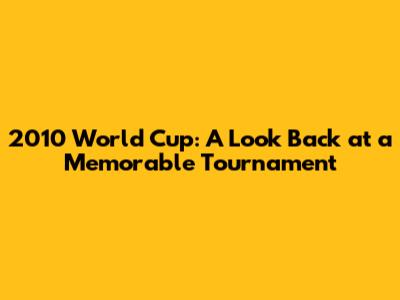 2010 World Cup: A Look Back At A Memorable Tournament