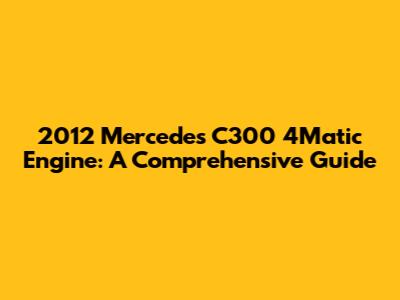 2012 Mercedes C300 4Matic Engine: Everything You Need To Know