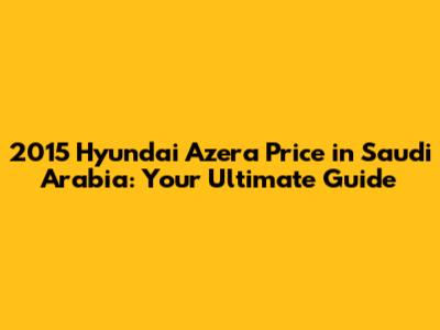 2015 Hyundai Azera Price In Saudi Arabia: A Comprehensive Guide