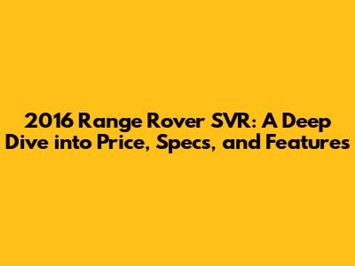 Hey everyone! Today, we're diving deep into the world of the 2016 Range Rover SVR. This beast of an SUV is more than just a vehicle; it's a statement. We'll be exploring everything from the 2016 Range Rover SVR price to its impressive features and specs. If you're considering getting behind the wheel of this performance-focused luxury SUV, you're in the right place. Let's get started, shall we?
