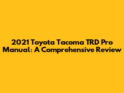 Hey there, truck enthusiasts! Let's dive deep into the 2021 Toyota Tacoma TRD Pro with a manual transmission. For those of you who appreciate the tactile feel of shifting gears and the enhanced control it offers, this truck might just be your dream come true. In this article, we’ll explore everything that makes this particular model stand out, from its rugged design and off-road capabilities to the nuances of driving a manual in a modern pickup.