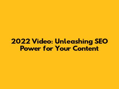 2022 Video: Unleashing SEO Power For Your Content