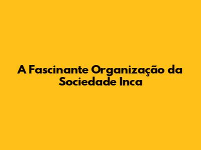 A Fascinante Organização Da Sociedade Inca