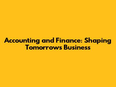 Accounting And Finance: Shaping Tomorrow's Business