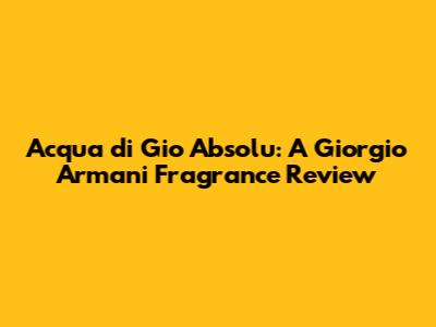 Acqua Di Gio Absolu: A Giorgio Armani Fragrance Review