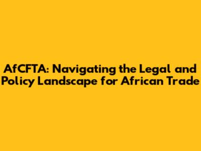 AfCFTA: Legal & Policy Frameworks For Trade In Africa