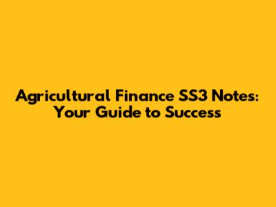 Agricultural Finance SS3 Notes: Your Guide To Success