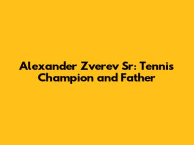 Alexander Zverev Sr: Tennis Champion And Father