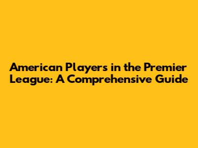 American Players In The Premier League: A Comprehensive Guide