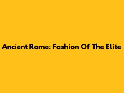 Ancient Rome: Fashion Of The Elite