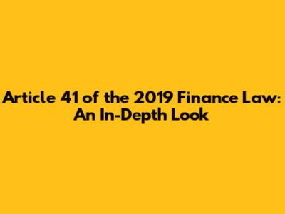 Article 41 Finance Law 2019: Everything You Need To Know