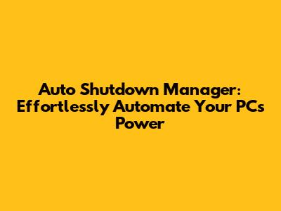Auto Shutdown Manager: Automate Your PC Power