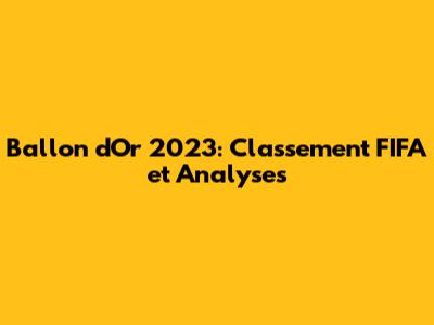 Ballon D'Or 2023: Classement FIFA Et Analyses