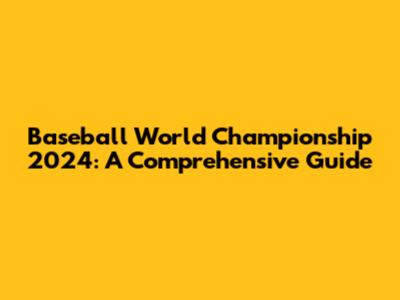 Baseball World Championship 2024: Everything You Need To Know