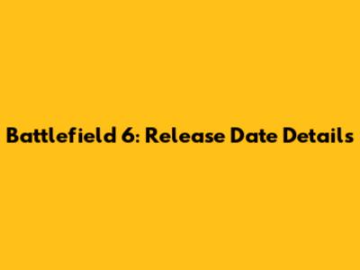 Battlefield 6: Release Date Details