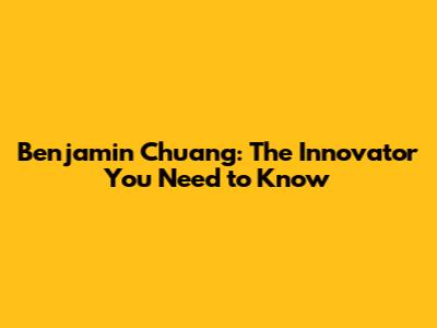 Benjamin Chuang: The Innovator You Need To Know