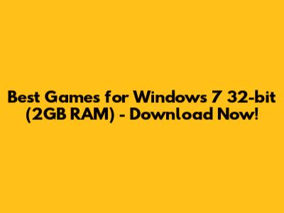 Best Games For Windows 7 32-bit (2GB RAM) - Download Now!