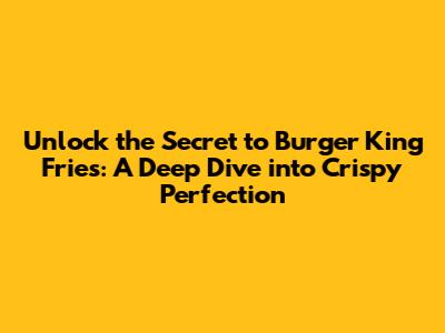 Unlock the Secret to Burger King Fries: A Deep Dive into Crispy Perfection