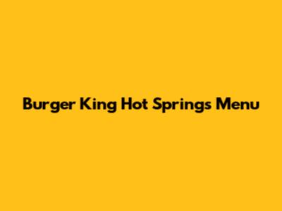 Burger King Hot Springs Menu: Find It Here!