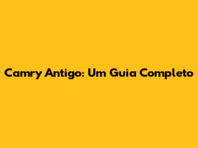 Camry Antigo: Um Guia Completo