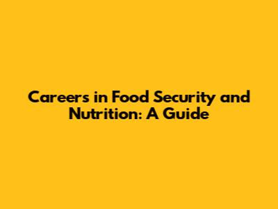 Careers In Food Security And Nutrition: A Guide