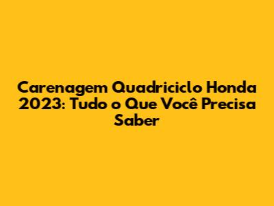 Carenagem quadriciclo Honda 2023, se você é um entusiasta de quadriciclos, ou está pensando em adquirir um, entender sobre a carenagem é crucial. A carenagem não é apenas um detalhe estético; ela desempenha um papel fundamental na proteção, aerodinâmica e, claro, na aparência do seu veículo. Neste guia completo, vamos explorar tudo sobre a carenagem do quadriciclo Honda 2023, desde suas funções e materiais até dicas de manutenção e customização. Prepare-se para se aprofundar no universo da carenagem do quadriciclo Honda, tornando sua experiência ainda mais proveitosa!