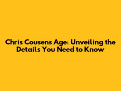 Chris Cousens Age: Unveiling The Details You Need To Know