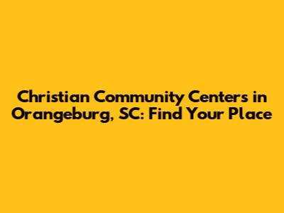 Hey guys! Are you looking for a place where you can connect with your faith, get involved in your community, and find support? Well, you're in luck! Orangeburg, South Carolina, has some fantastic Christian community centers that offer a wide range of programs and activities. Let's dive in and explore what these centers have to offer and how they can become your home away from home.