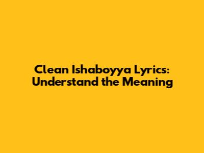 Clean Ishaboyya Lyrics: Understand The Meaning