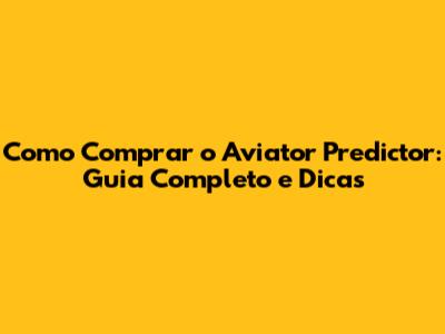 Como Comprar O Aviator Predictor: Guia Completo