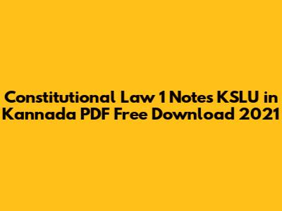 Constitutional Law 1 Notes KSLU Kannada PDF Free Download 2021