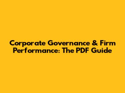 Corporate Governance & Firm Performance: The PDF Guide