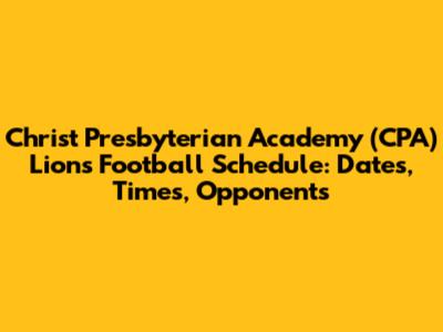 Hey there, football fans! Are you ready to roar with the CPA Lions this season? If you're a student, parent, or just a die-hard supporter, knowing the Christ Presbyterian Academy football schedule is key to planning your weekends and cheering on your team. So, let's dive into everything you need to know about the CPA Lions' upcoming games, including dates, times, opponents, and even a little insight into what makes this team so special.