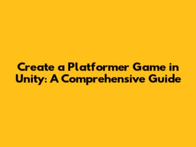 Create A Platformer Game In Unity: A Comprehensive Guide