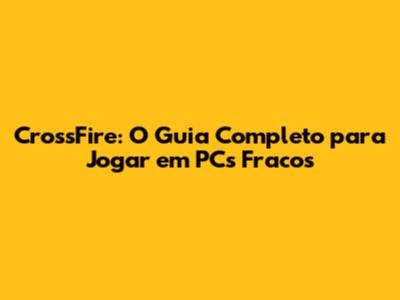 CrossFire é um jogo divertido e que não exige um PC super potente para rodar. Com as dicas que demos aqui, você pode baixar CrossFire, otimizar as configurações gráficas e melhorar o desempenho do seu PC fraco. Lembre-se de que a chave é encontrar um equilíbrio entre qualidade visual e desempenho. Não tenha medo de experimentar diferentes configurações para encontrar a que funciona melhor para você. Com um pouco de paciência e dedicação, você poderá dominar CrossFire e se divertir muito, mesmo com um PC modesto. Então, prepare-se para a ação e boa sorte nos campos de batalha!