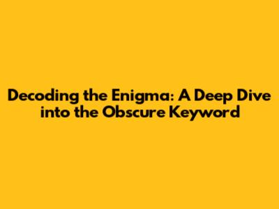Decoding The Enigma: A Deep Dive Into The Obscure Keyword