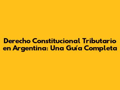 Derecho Constitucional Tributario En Argentina: Guía Completa