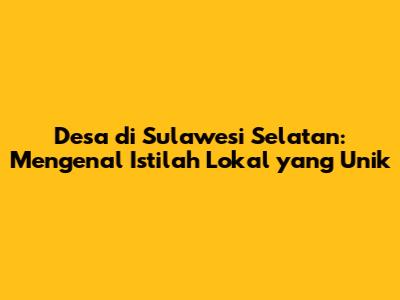 Desa Di Sulawesi Selatan: Mengenal Istilah Lokal Yang Unik