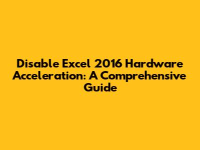 Hey everyone, let's dive into how to disable hardware acceleration in Excel 2016. This is a super handy trick if you're running into issues like Excel freezing, lagging, or displaying weird visual glitches. It's a pretty straightforward process, but understanding why you might need to do this and the steps involved can really help you troubleshoot and optimize your Excel experience. We'll go through the ins and outs, making sure you can get your spreadsheets running smoothly again. So, if you're experiencing problems with Excel 2016, read on, and let's get you sorted out! This guide provides a detailed walkthrough, ensuring you can quickly resolve any performance issues.
