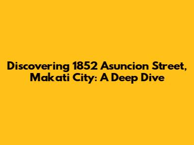 Hey there, fellow explorers! Let's embark on a virtual journey to 1852 Asuncion Street in the bustling city of Makati, Philippines. You know, Makati is the heart of the Philippines' financial district and a vibrant hub of activity. This isn't just about a street address; it's about uncovering a piece of the city's story, understanding its significance, and perhaps, even discovering your next favorite spot. So, buckle up, because we're about to dive deep! We'll explore what makes 1852 Asuncion Street stand out, what you can find in this area, and why it might just be a hidden gem worth your attention. Get ready to have your curiosity piqued and your inner explorer activated!