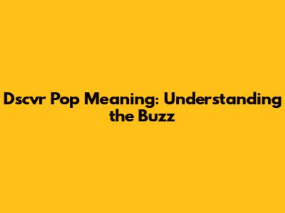 Dscvr Pop Meaning: Understanding The Buzz