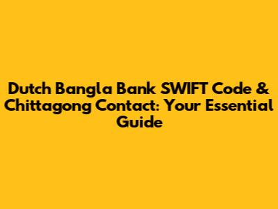 Dutch Bangla Bank SWIFT & Chittagong Contact Info