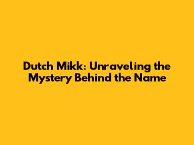 Dutch Mikk: The Enigmatic Figure Explained