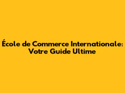 École De Commerce Internationale : Guide Complet
