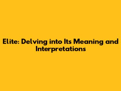 Elite: Unveiling The Meaning And Nuances Of This Powerful Word