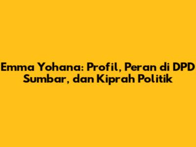 Emma Yohana, sosok yang semakin dikenal dalam kancah politik Sumatera Barat, telah menorehkan jejak yang signifikan. Sebagai anggota Dewan Perwakilan Daerah (DPD) Sumatera Barat, ia memainkan peran penting dalam menyuarakan aspirasi masyarakat dan memperjuangkan kepentingan daerah. Artikel ini akan mengupas tuntas profil Emma Yohana, peran strategisnya di DPD Sumbar, serta kiprah politiknya yang patut untuk disimak, termasuk kontribusinya dalam menghadapi Pemilu 2024. Mari kita bedah bersama perjalanan karier politik seorang tokoh yang berpengaruh di Sumatera Barat ini.