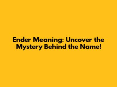 Ender Meaning: Uncover The Mystery Behind The Name!